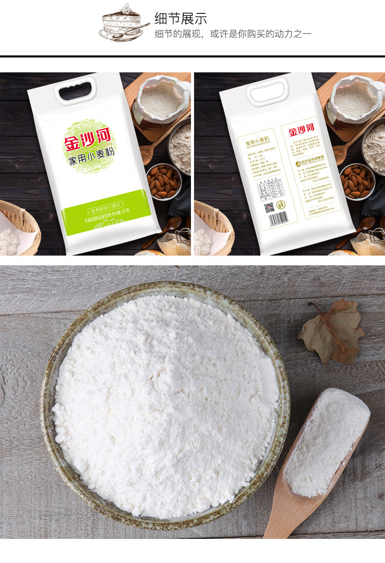 金沙河面粉家用 小麦粉5KG中筋 烘焙原料 饼饺子馒头 包子 麦芯粉
