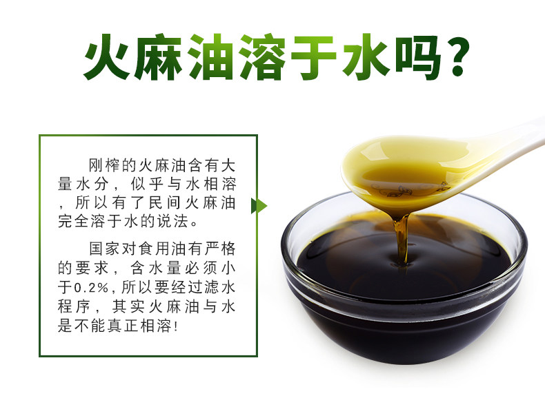 似乎与水相融、所以有了民间火麻油完全溶于水的说法。