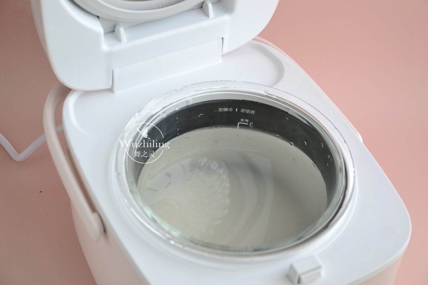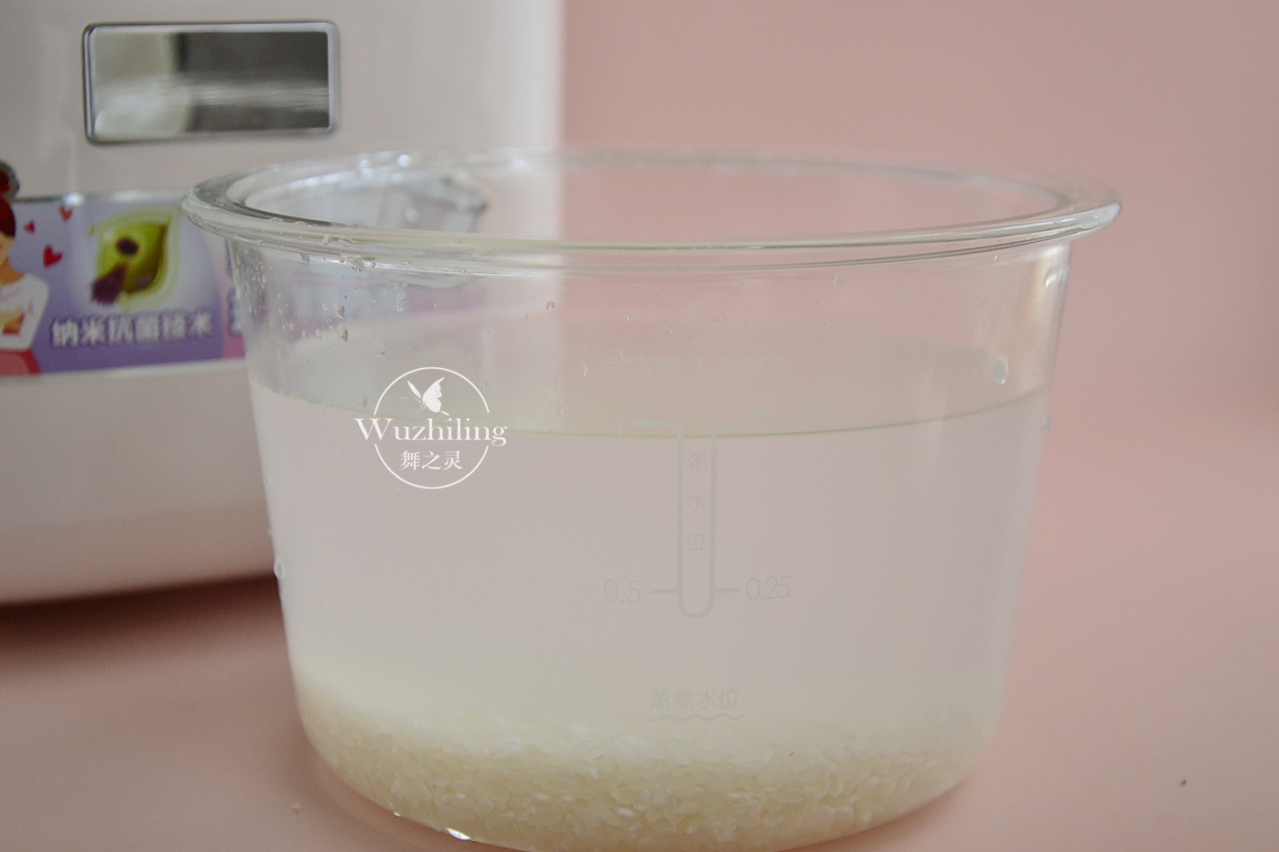 1、将一杯大米倒入宝宝饭煲的玻璃内胆里面,直接加入水冲洗干净,然后根据上面玻璃外面的标注,加入适量的水就成。如果你的内胆没有这个标识,你可以按照1:10的比例加水即可。