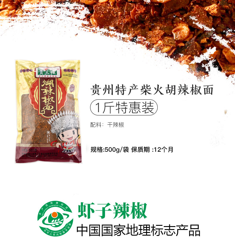贵三红贵州特产1斤手搓柴火糊辣椒面香超辣煳辣椒粉海椒凉拌蘸水