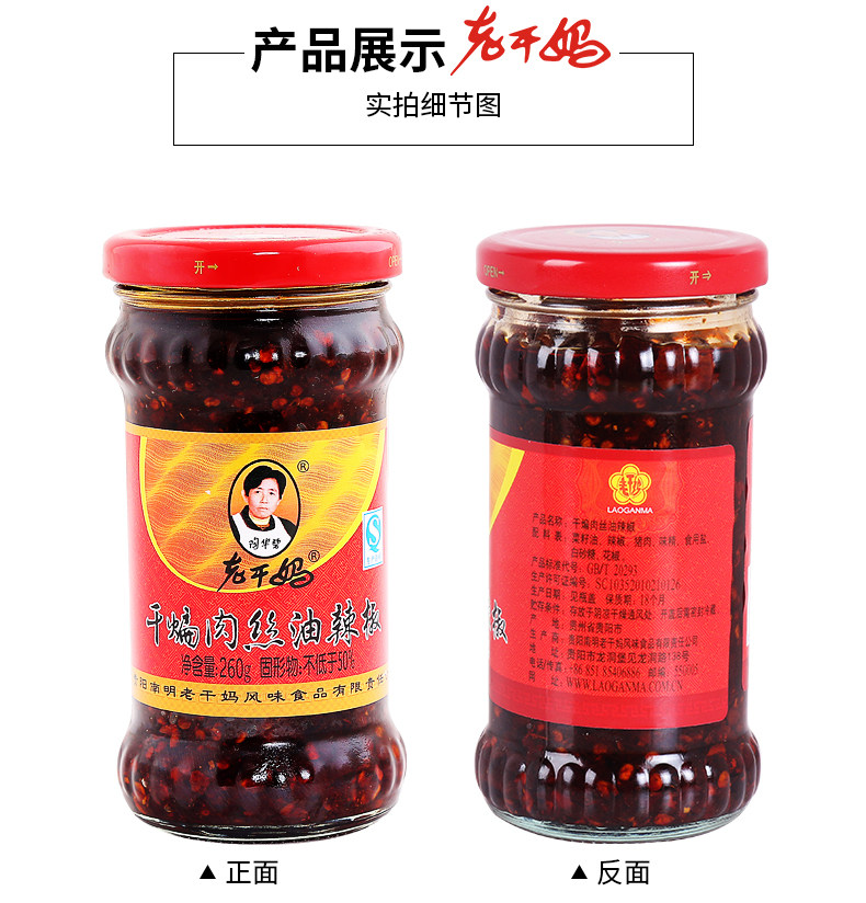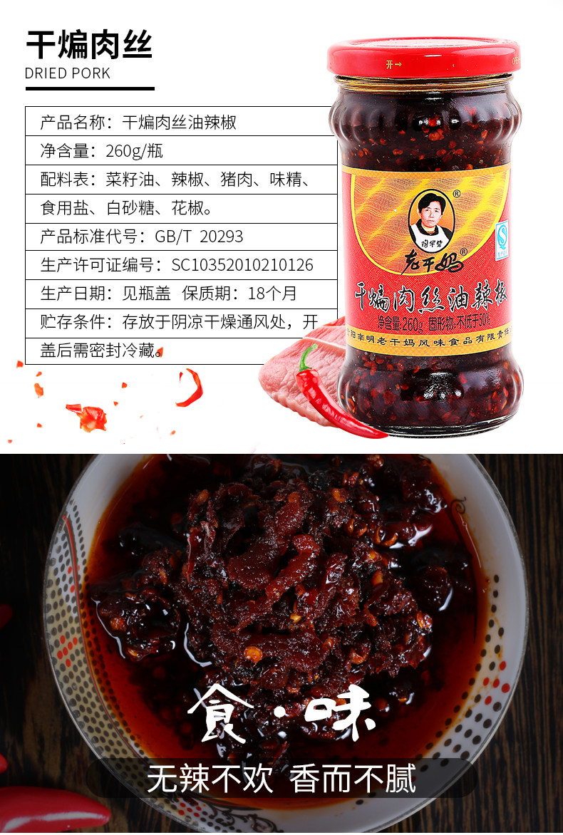 贵州特产老干妈干煸肉丝油辣椒260g*3瓶装香辣麻辣花椒拌饭调味料