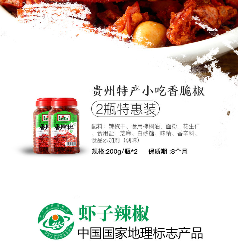 贵三红香脆椒贵州特产香酥辣椒香辣脆油炸小吃零食花生酥干辣椒丝