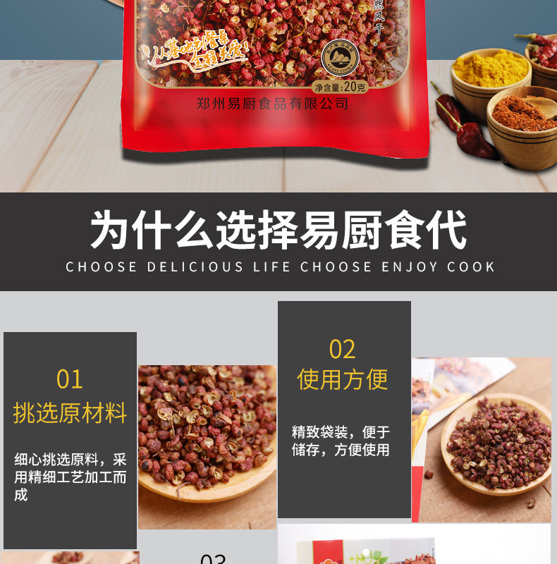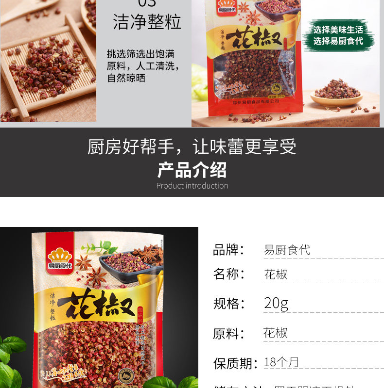 易厨食代袋装花椒粒20g*3袋调味料川菜家用中餐佐料厂家直销批发
