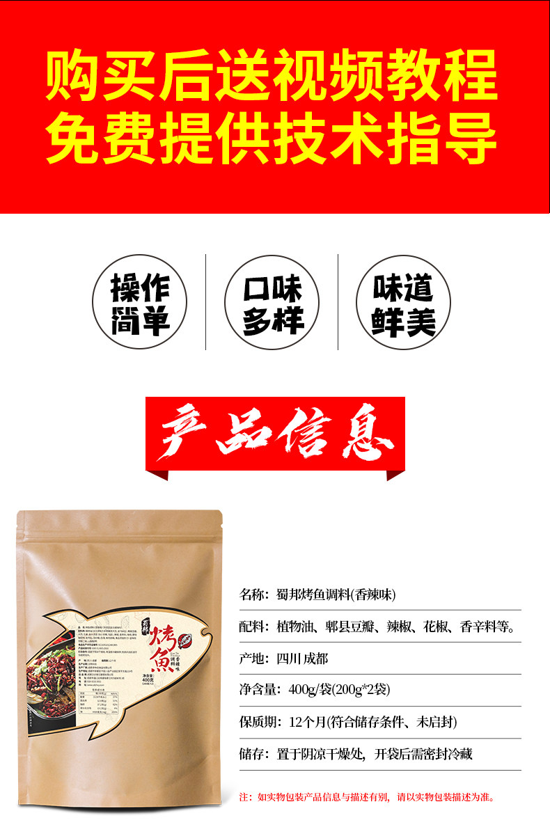 蜀邦烤鱼调料香辣400g万州诸葛烤鱼秘制料烤鱼酱纸包鱼料商用家用
