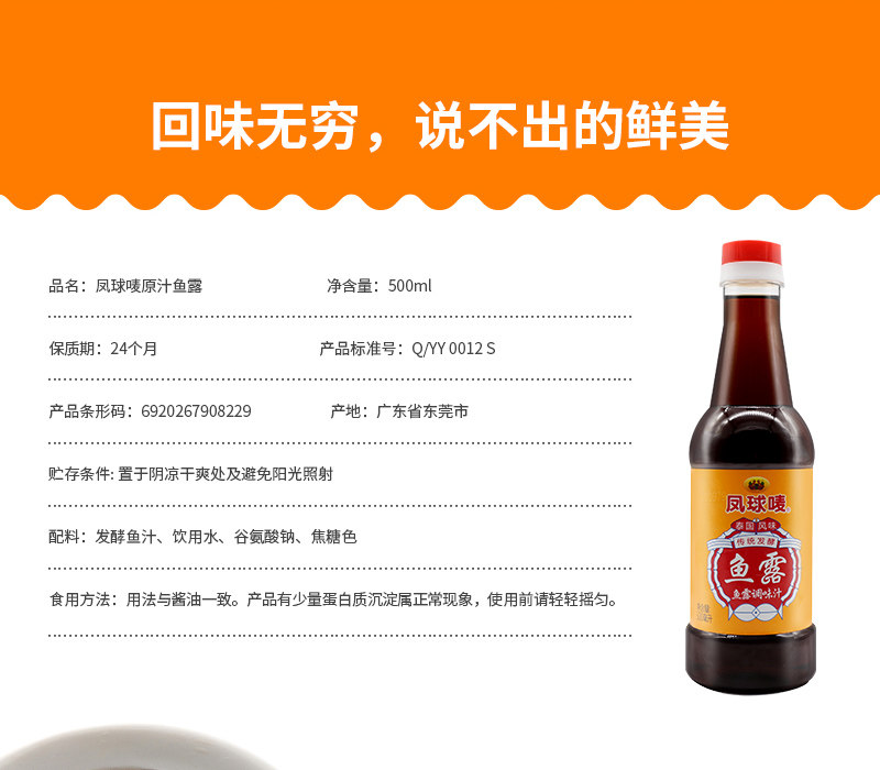 配料表:发酵鱼汁(鲜鱼、食用盐),饮用水,谷氨酸钠、焦糖色(加氨生产)